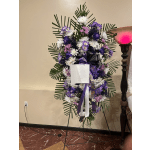 This peaceful arrangement includes roses, asiatic lilies, chrysanthemums, hydrangea, carnations, and other seasonal blooms. This is a great gift to send your respects. APPROXIMATE DIMENSIONS: 14" D x 24" H